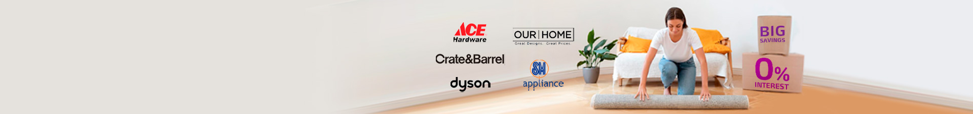 Transform your living space into your dream home with Ace Hardware, Crate and Barrel, Dyson, Our Home, and SM Appliance. Enjoy 0% interest on flexible installments with your EastWest credit card.